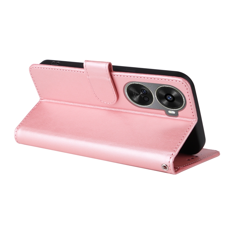 Funda de Cuero Huawei Nova 12 Se 4G con Diseño de Mariposas y Flores en Relieve (Oro Rosa)
