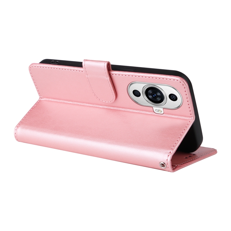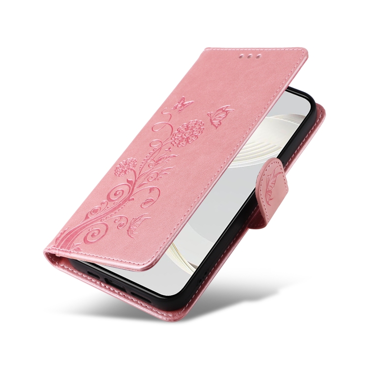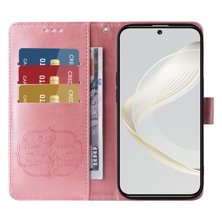 Funda de Cuero para Huawei Nova 12S 4G con Diseño de Mariposas y Flores en Relieve (Oro Rosa)