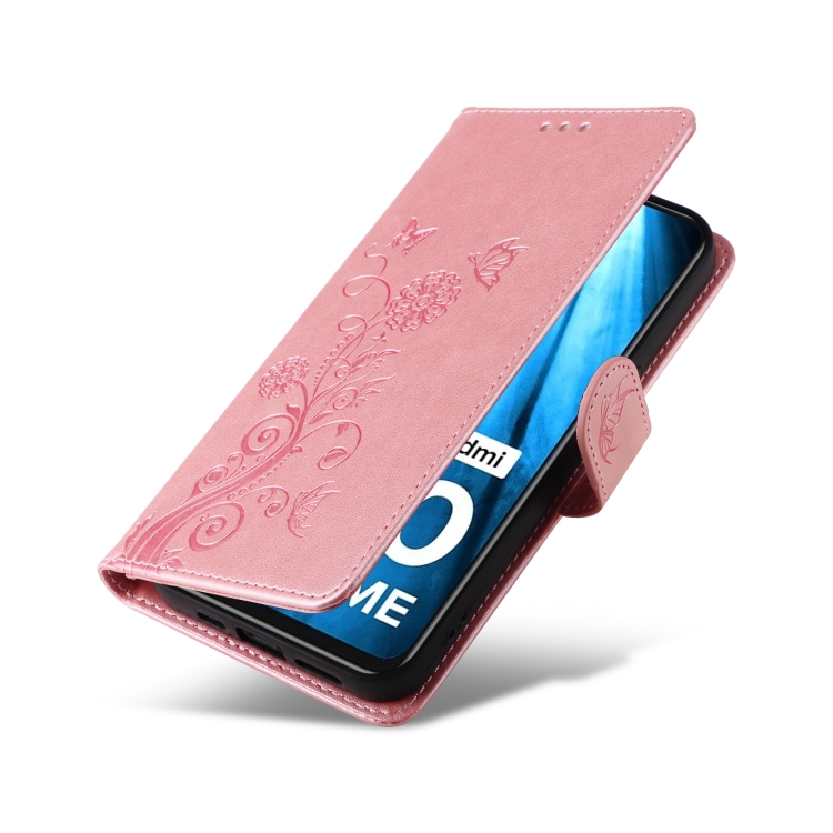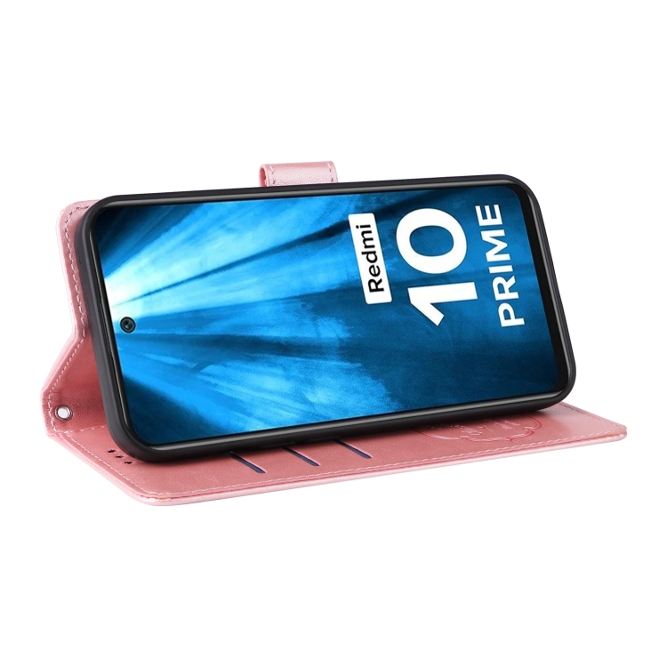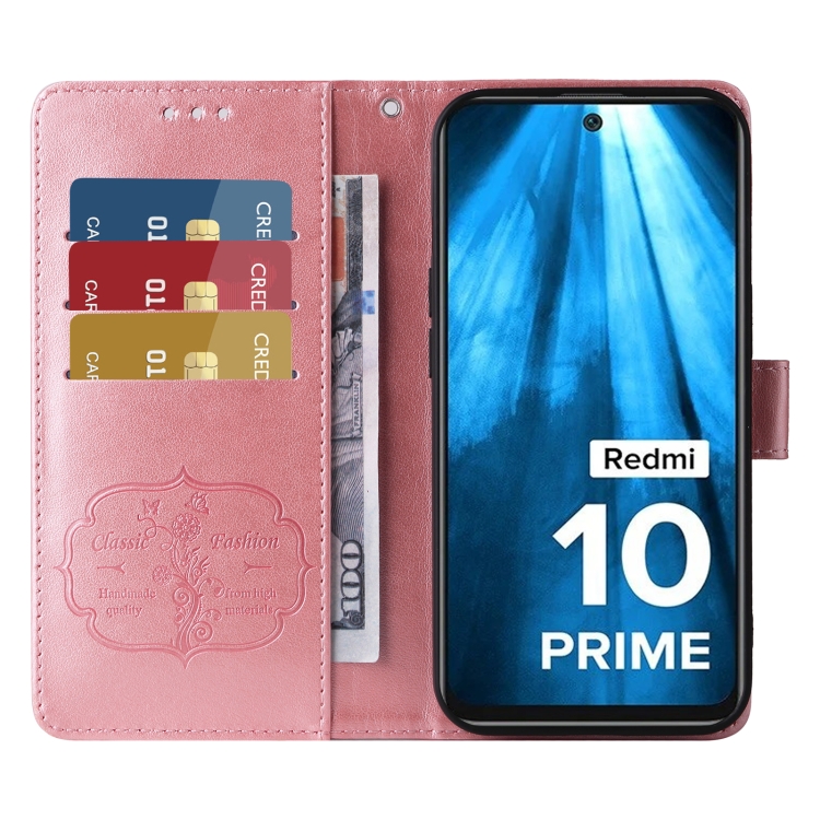 Funda de Cuero con Diseño de Mariposas y Flores En Relieve para Redmi 10 2022/10 Prime (Oro Rosa)