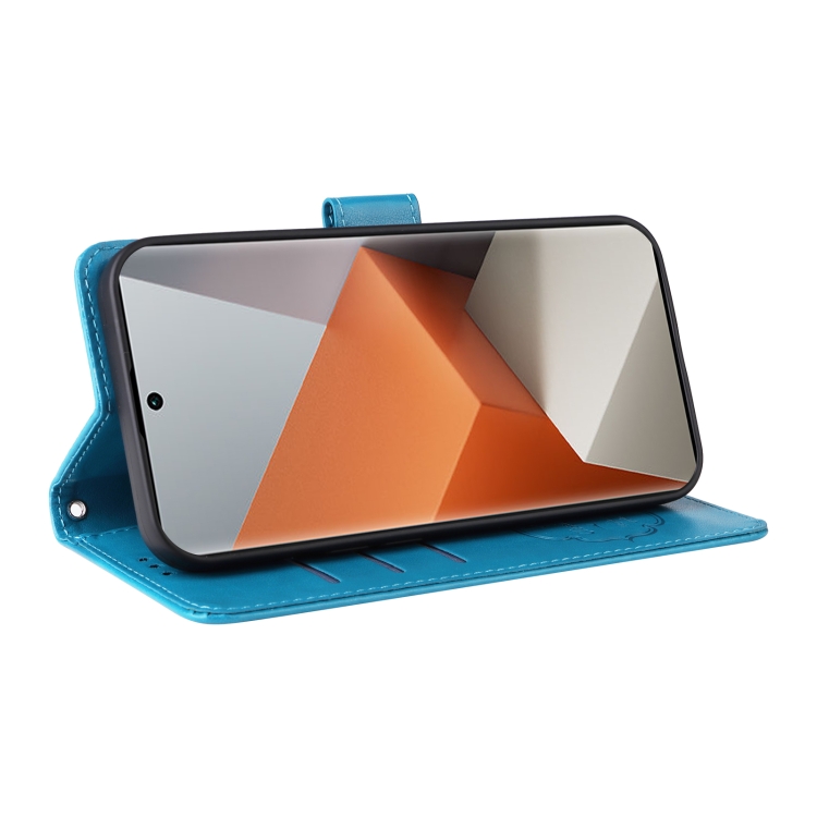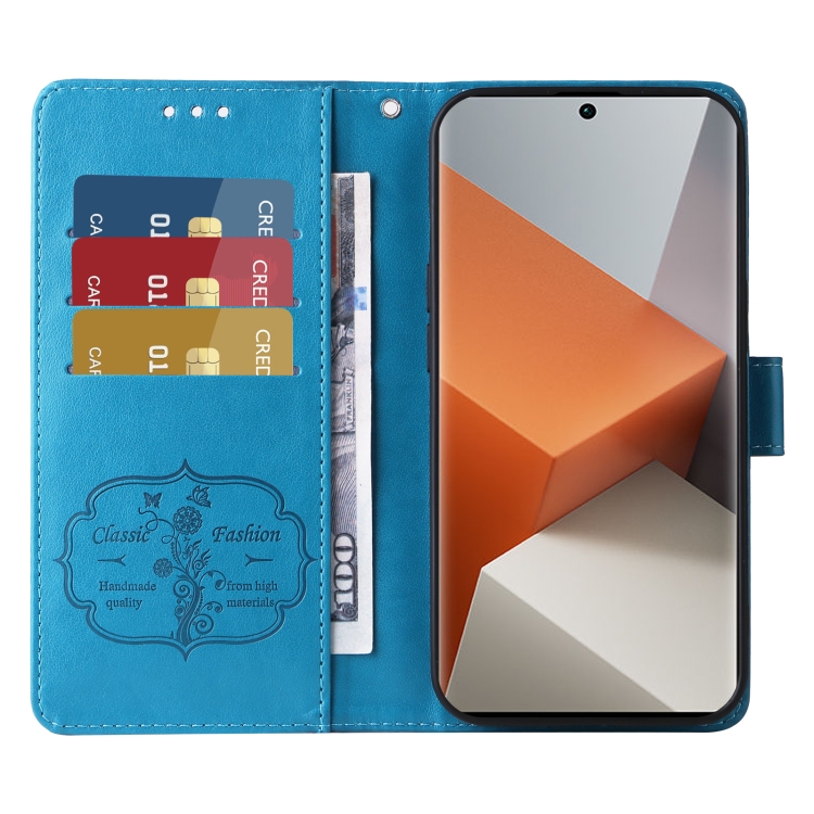 Funda de Cuero con Diseño de Mariposas y Flores En Relieve para Redmi Note 13 Pro+ 5G (Azul)