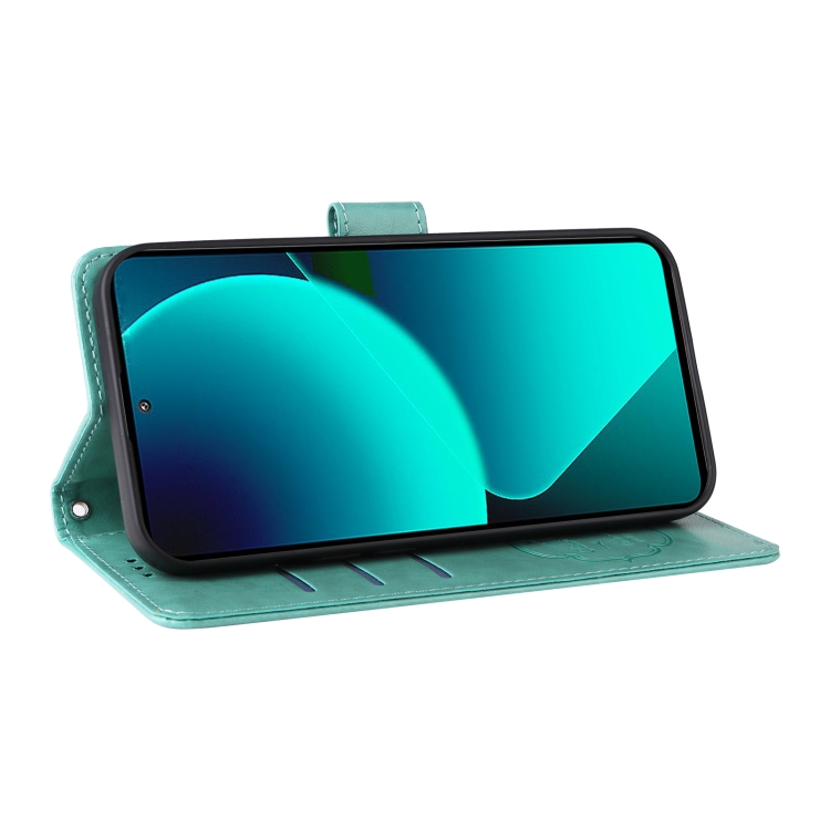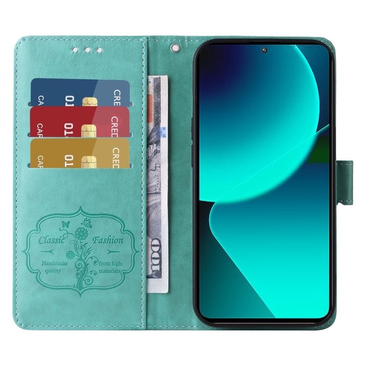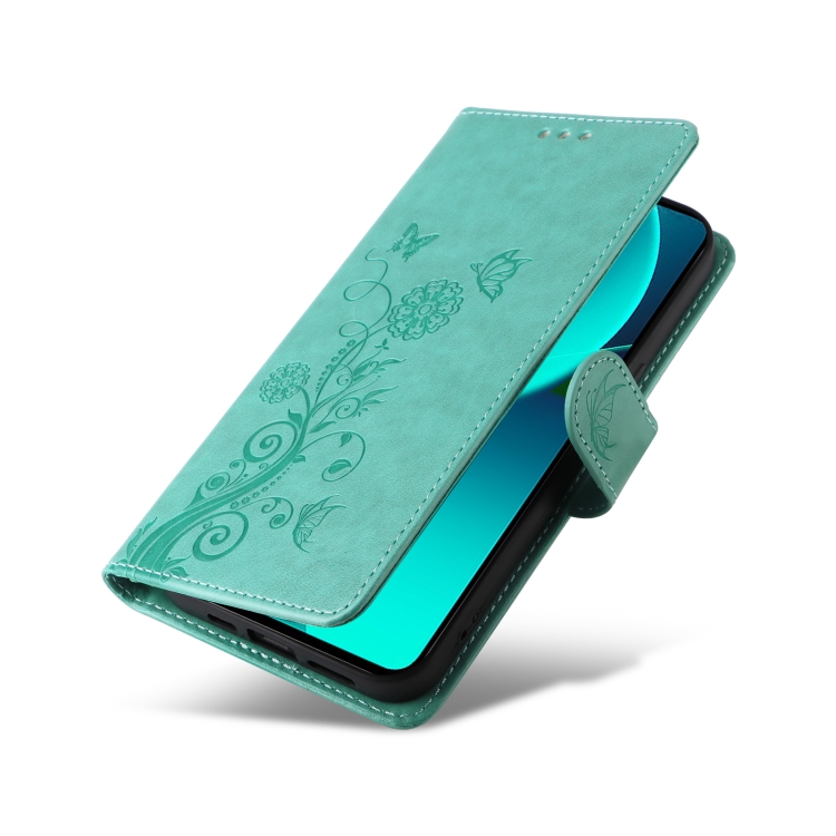 Funda de Cuero con Diseño de Mariposas y Flores En Relieve para Xiaomi 13T / 13T Pro / Redmi K60 Ultra (Verde)