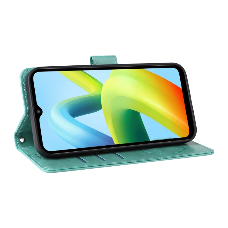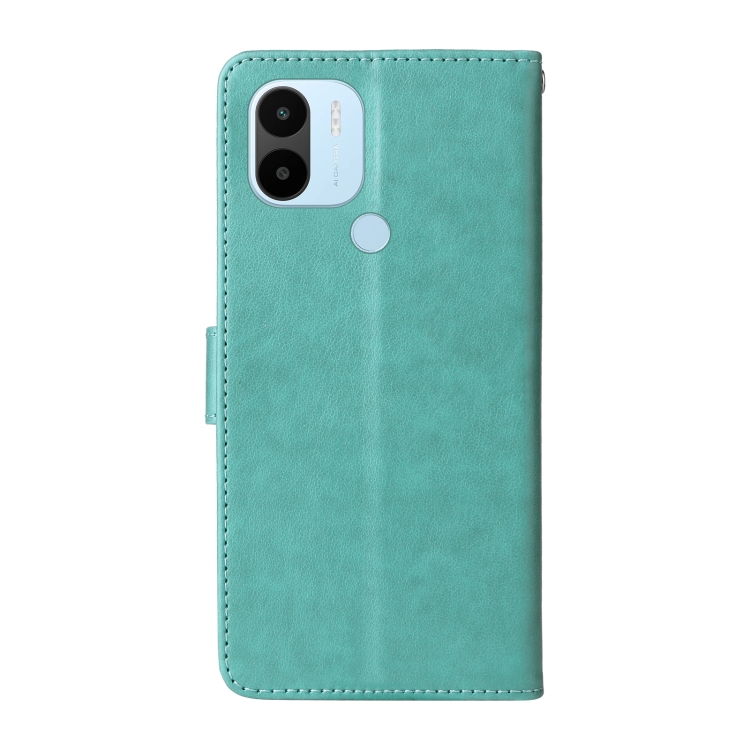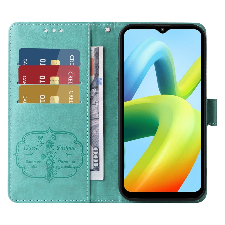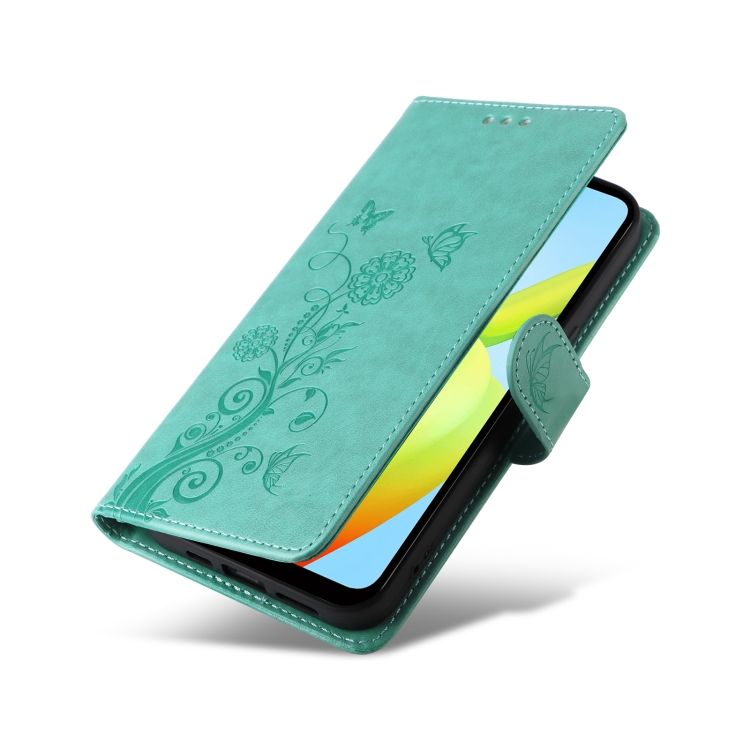 Funda de Cuero con Diseño de Mariposas y Flores En Relieve para Xiaomi Poco C50/C51 (Verde)
