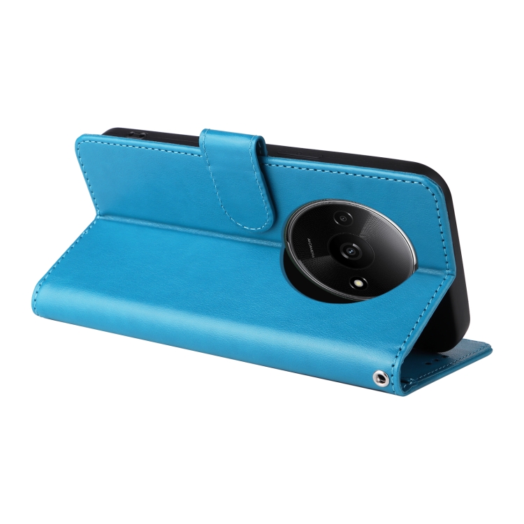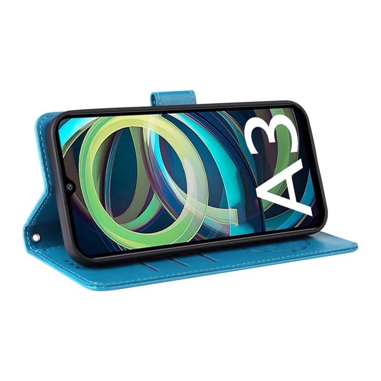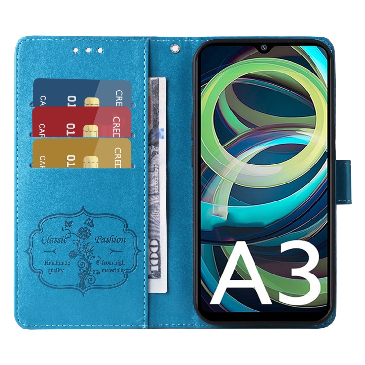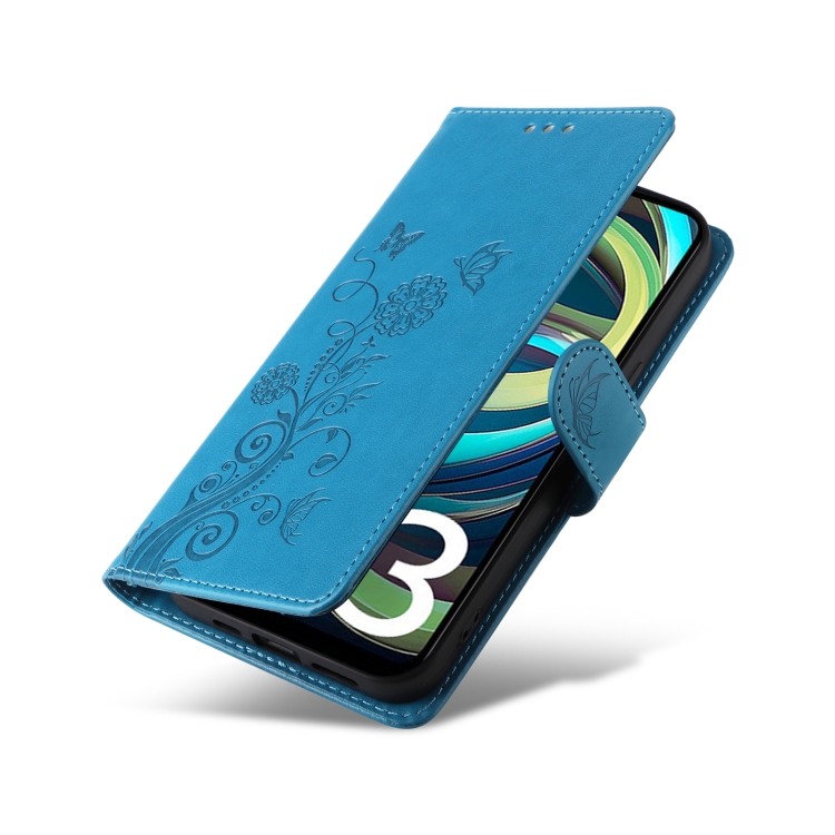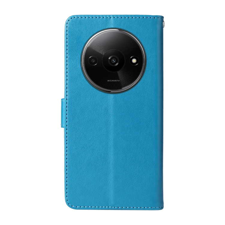 Funda de Cuero con Diseño de Mariposas y Flores En Relieve para Xiaomi Poco C61 4G/Redmi A3 4G (Azul)