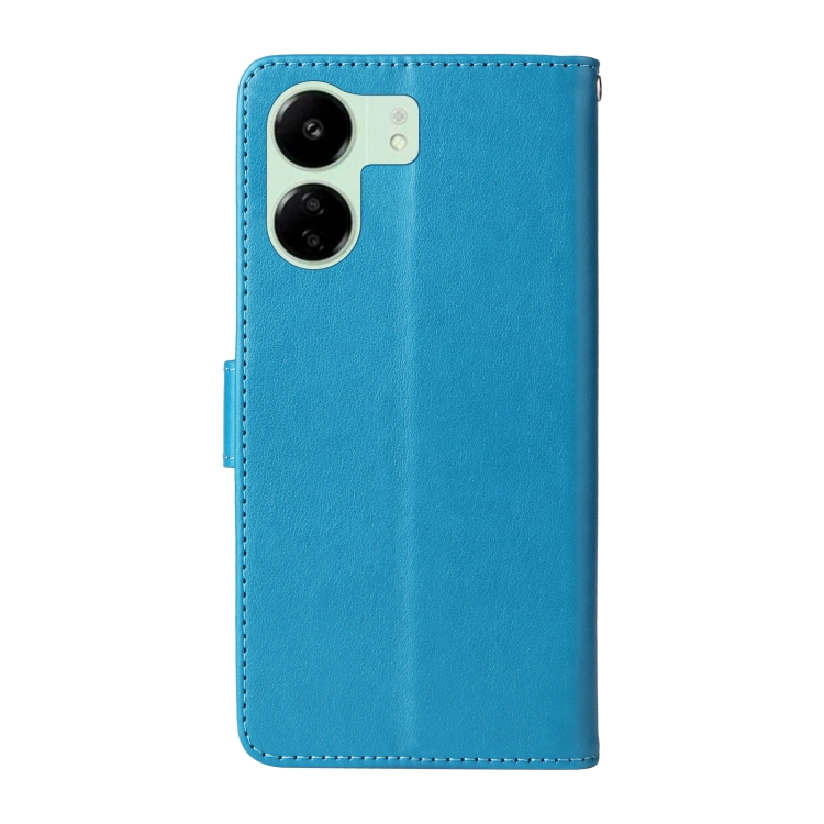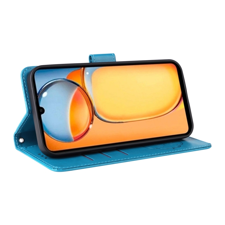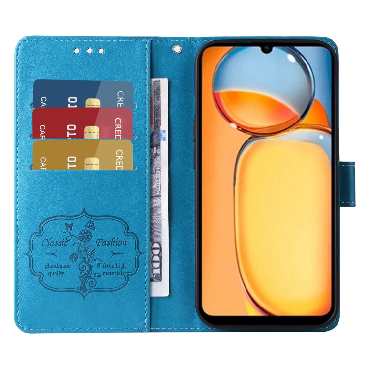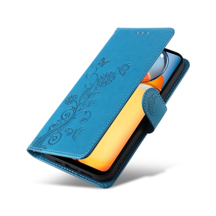 Funda de Cuero con Diseño de Mariposas y Flores En Relieve para Xiaomi Poco C65/M6 5G (Azul)