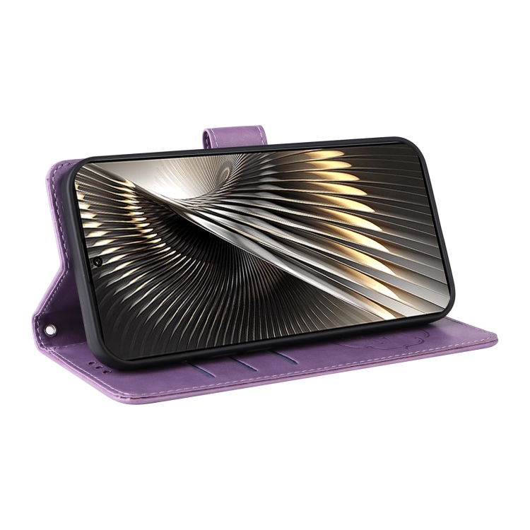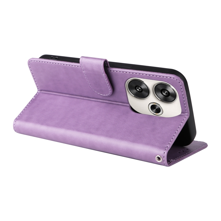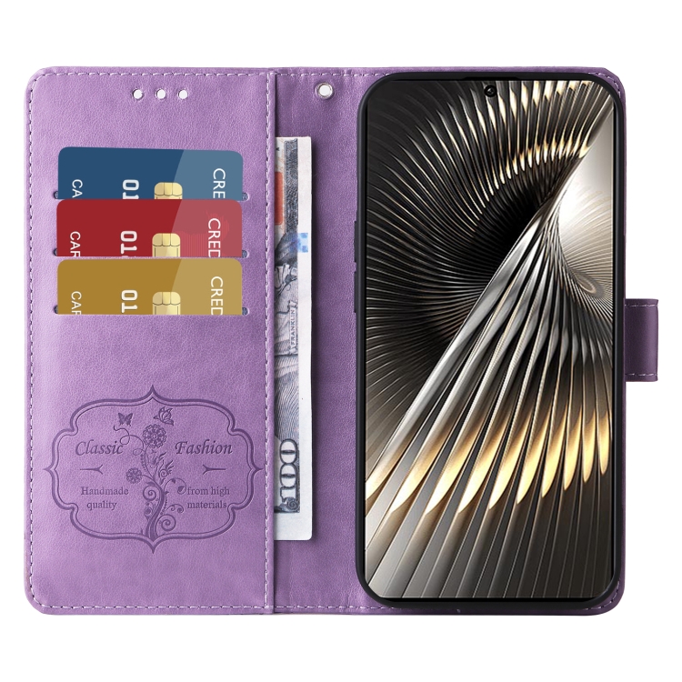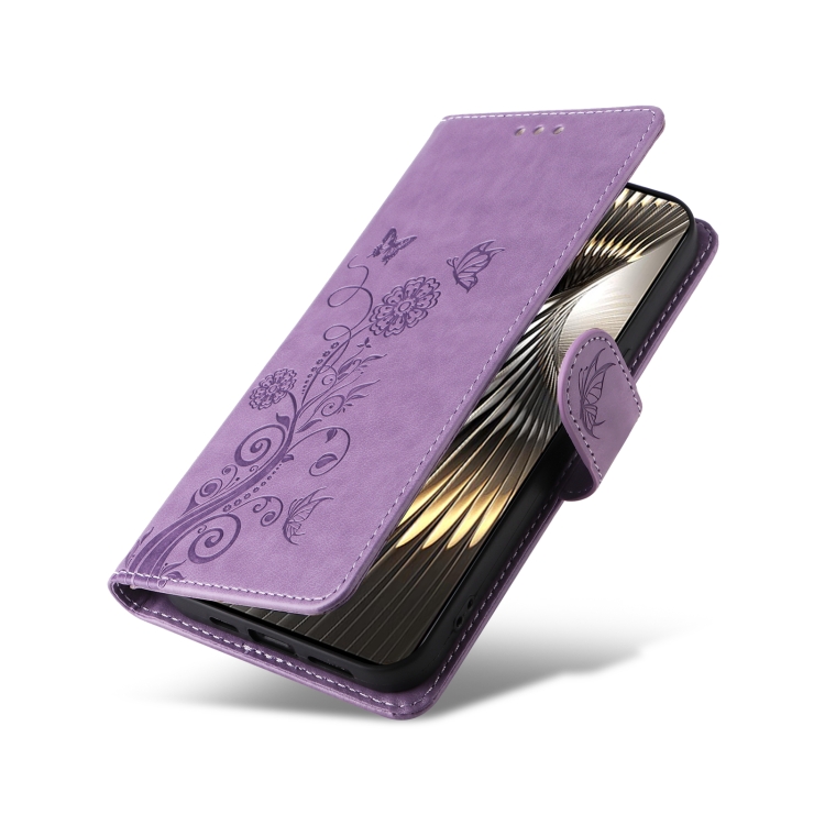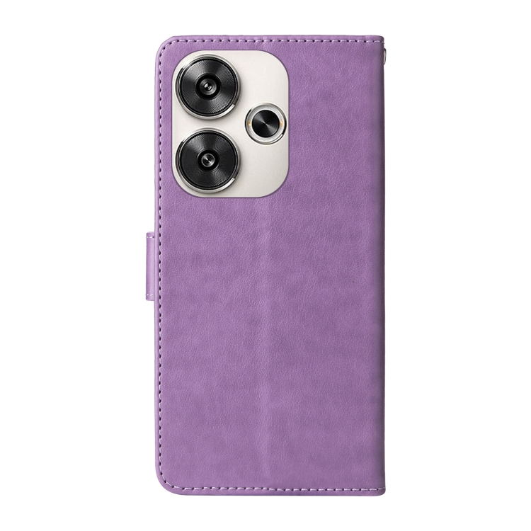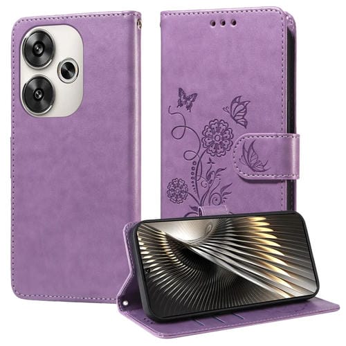 Funda de Cuero con Diseño de Mariposas y Flores En Relieve para Xiaomi Poco F6 (Morado)
