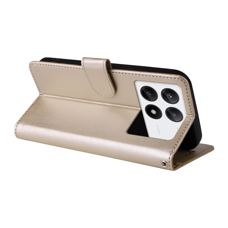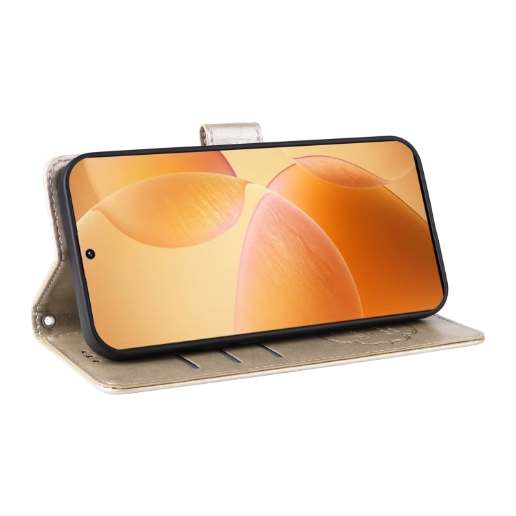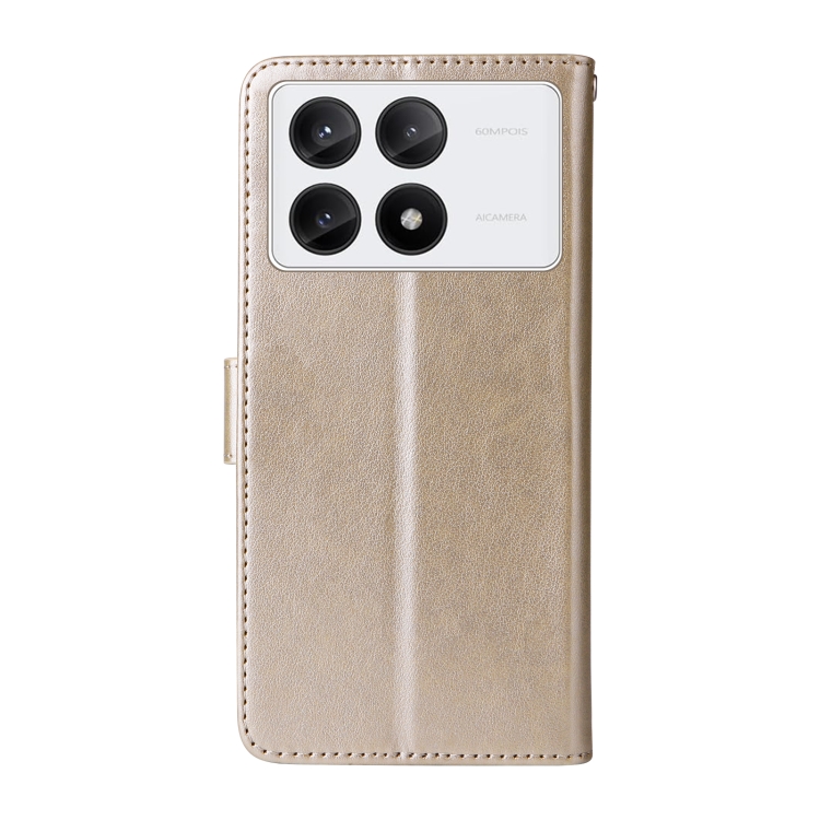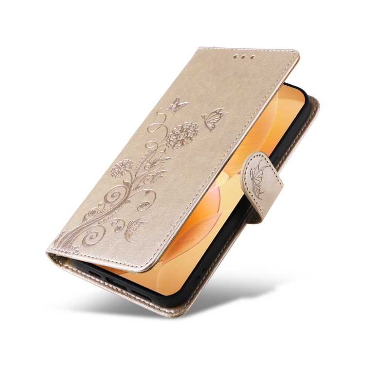 Funda de Cuero con Diseño de Mariposas y Flores En Relieve para Xiaomi Poco F6 Pro (Dorada)