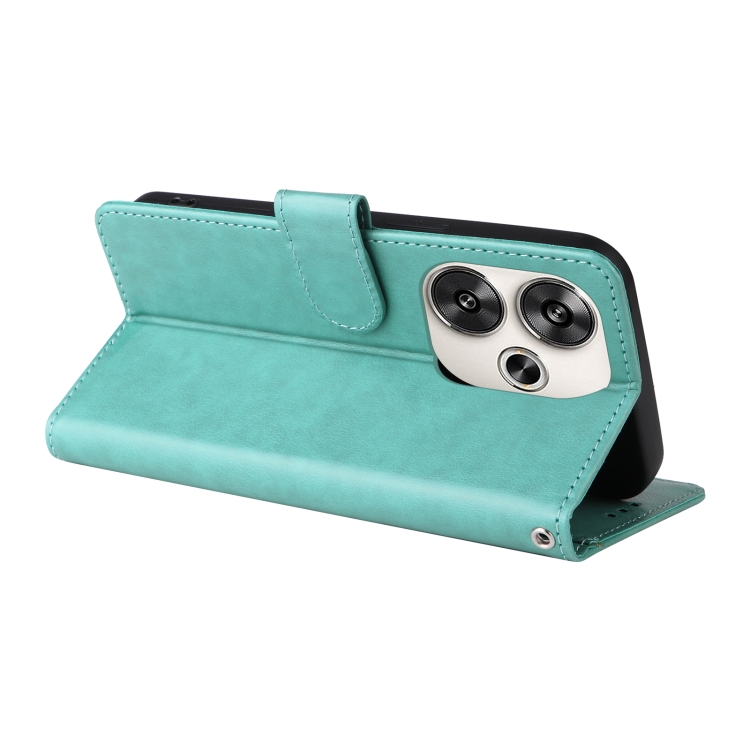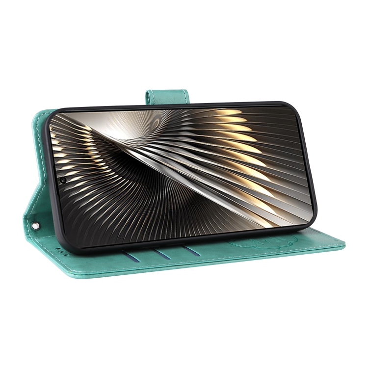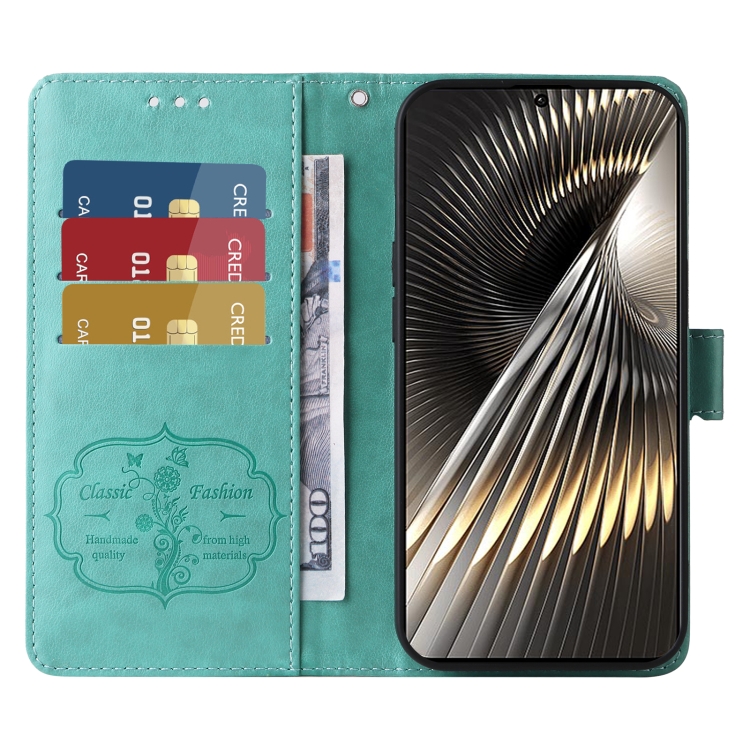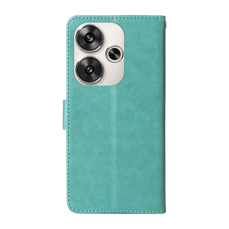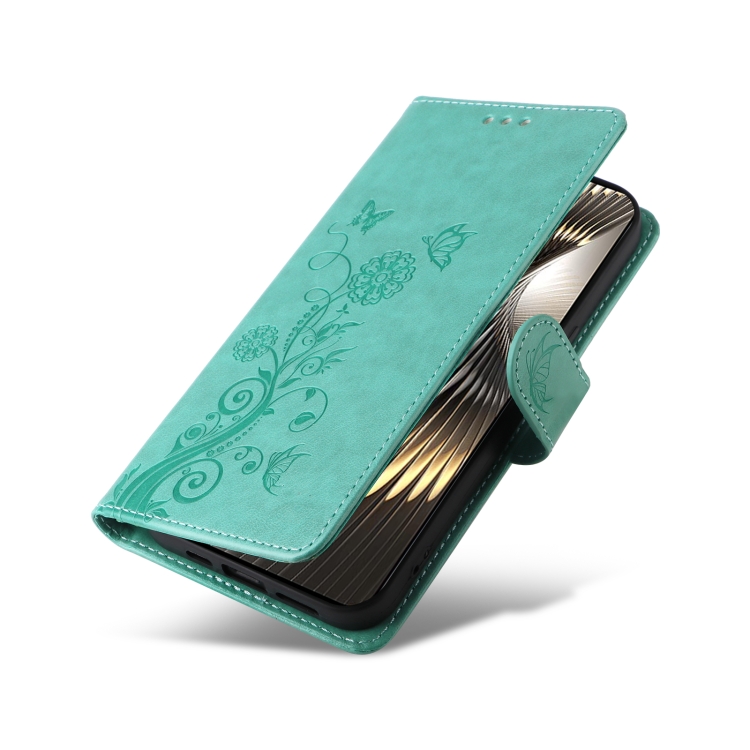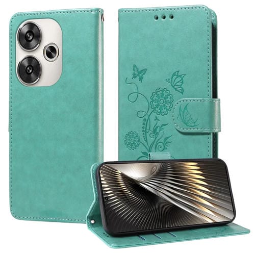 Funda de Cuero con Diseño de Mariposas y Flores En Relieve para Xiaomi Poco F6 (Verde)