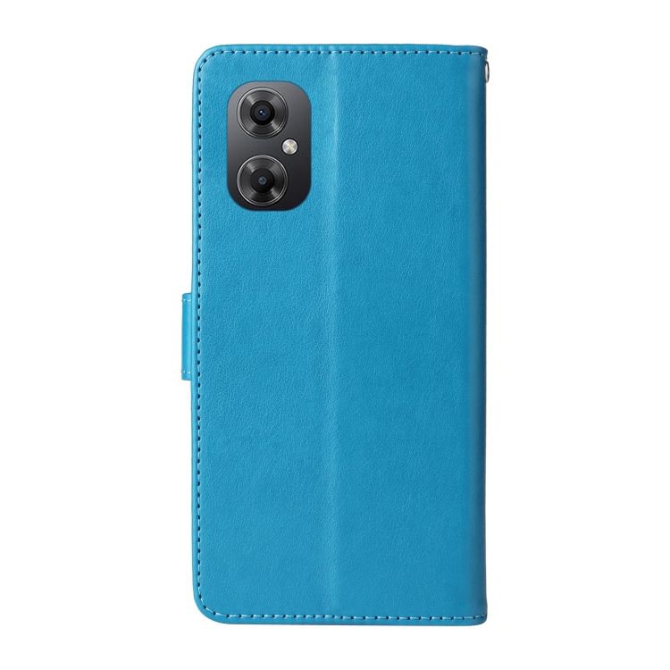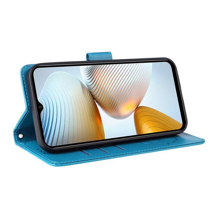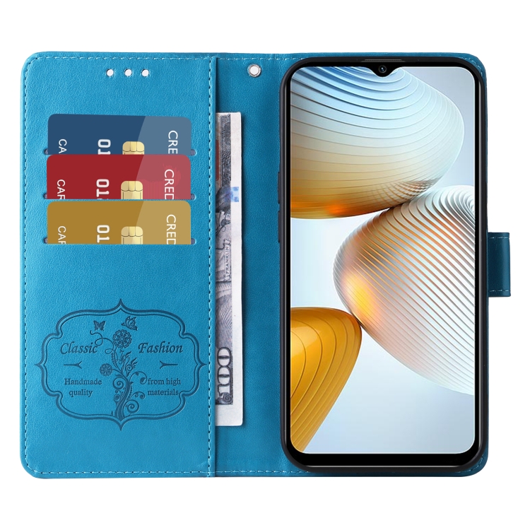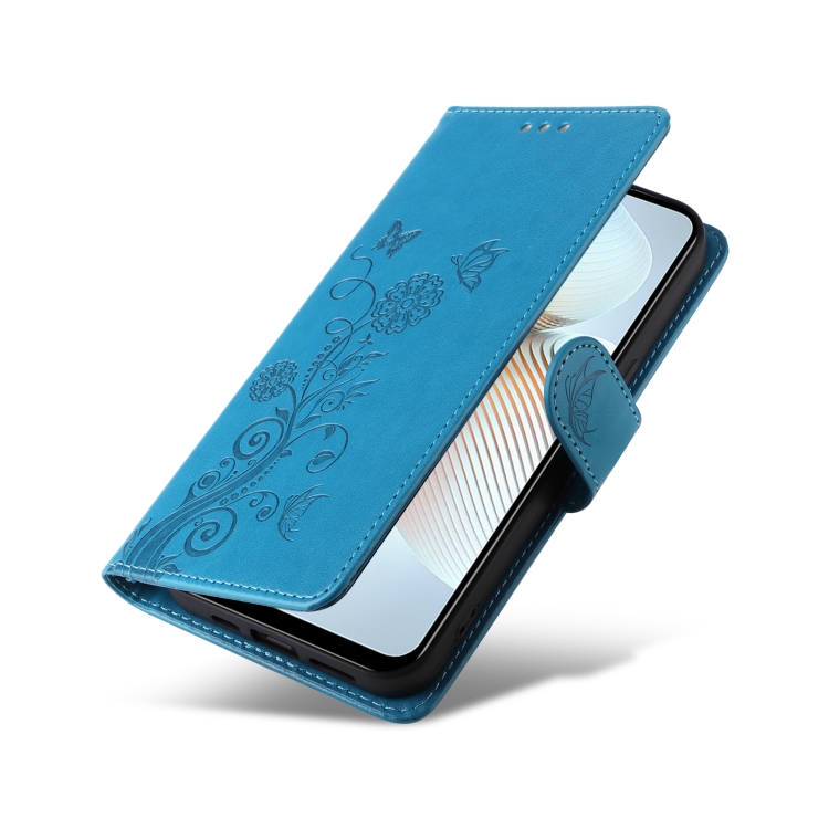 Funda de Cuero con Diseño de Mariposas y Flores En Relieve para Xiaomi Poco M4 5G/M5 4G (Azul)