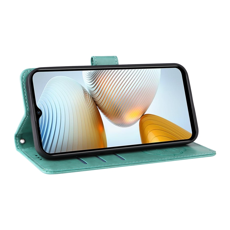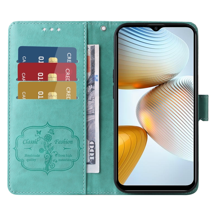 Funda de Cuero con Diseño de Mariposas y Flores En Relieve para Xiaomi Poco M4 5G/M5 4G (Verde)