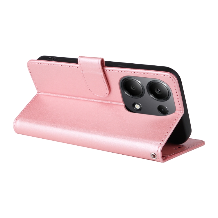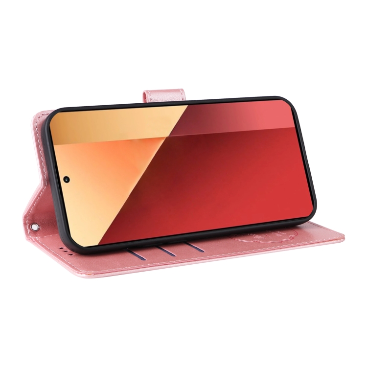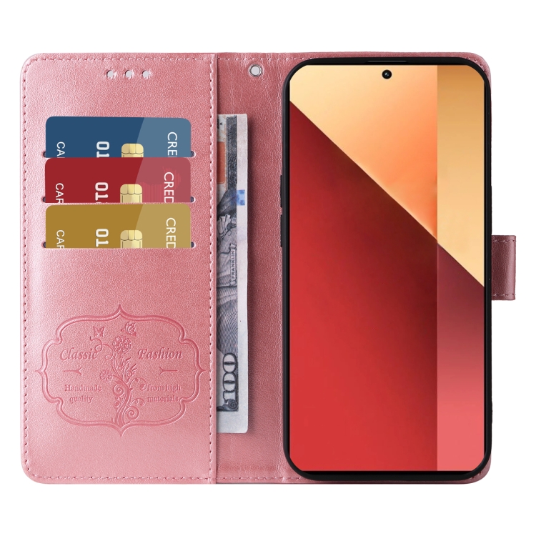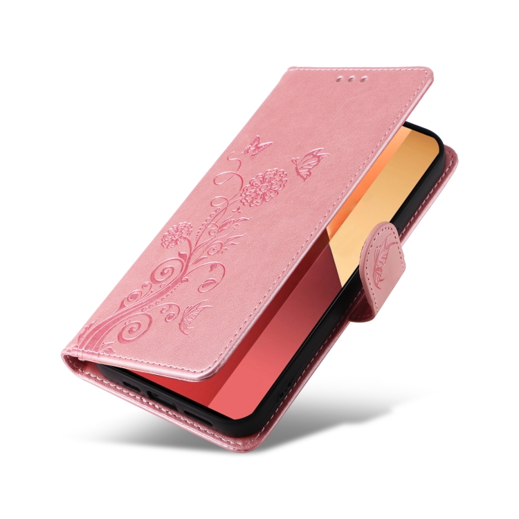 Funda de Cuero con Diseño de Mariposas y Flores En Relieve para Xiaomi Poco M6 Pro 4G (Oro Rosa)