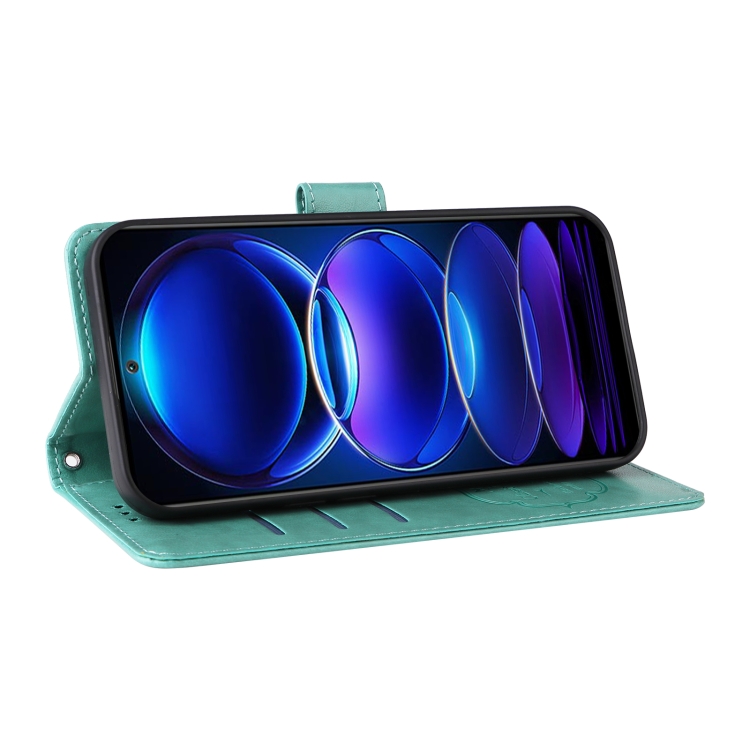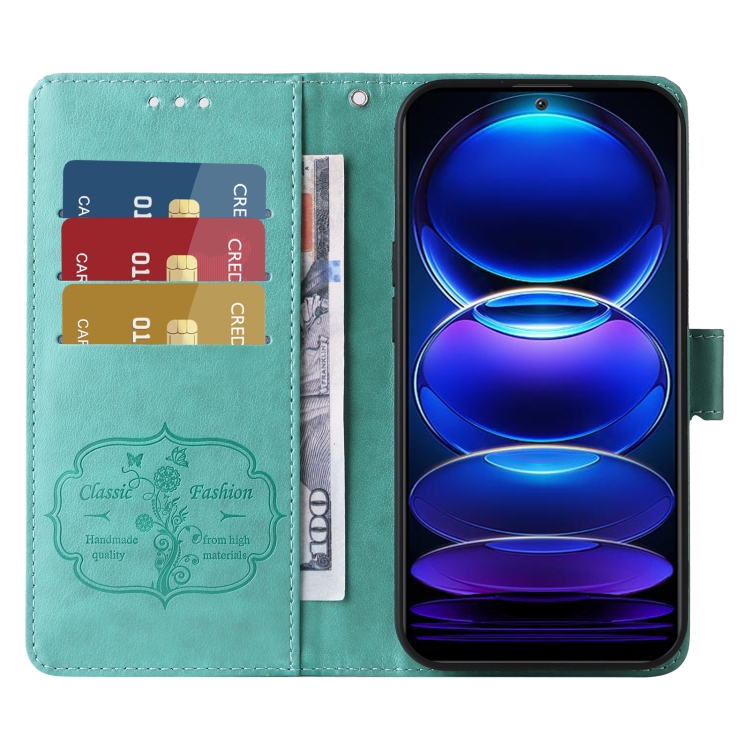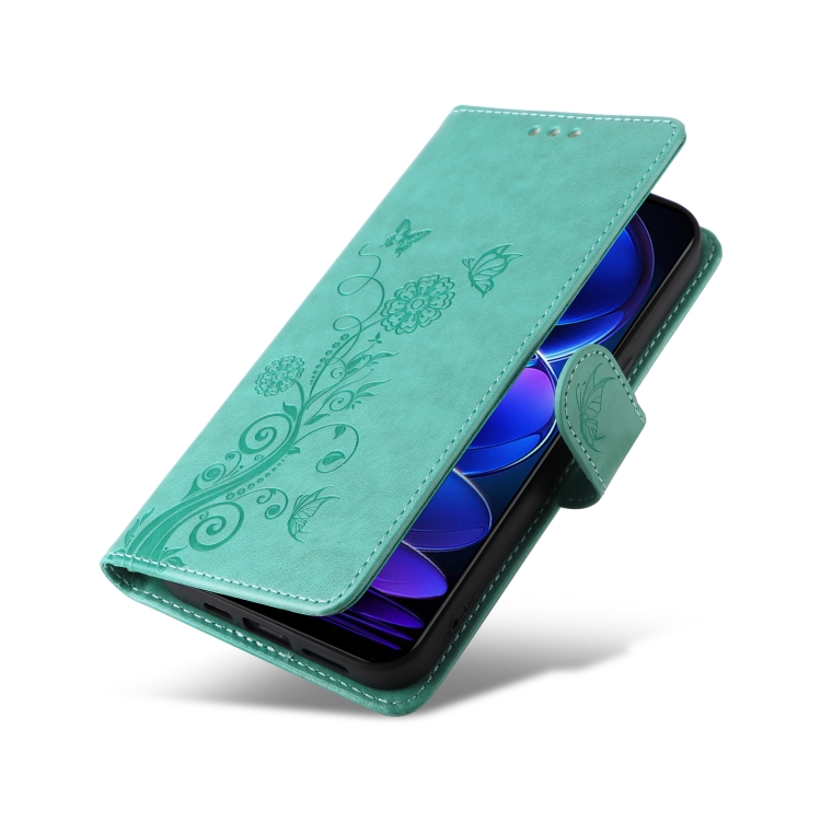 Funda de Cuero con Diseño de Mariposas y Flores En Relieve para Xiaomi Poco X5 5G (Verde)
