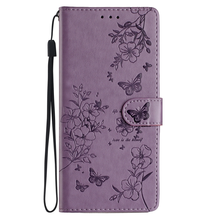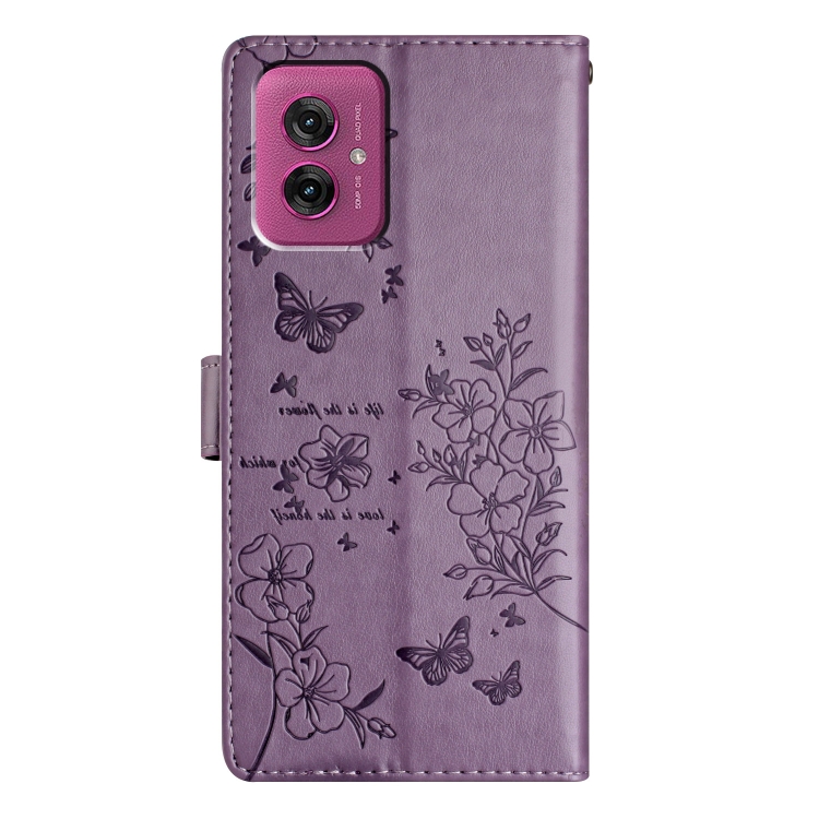 Funda de Cuero para Motorola Moto G55 con Mariposas y Flores (Morado)