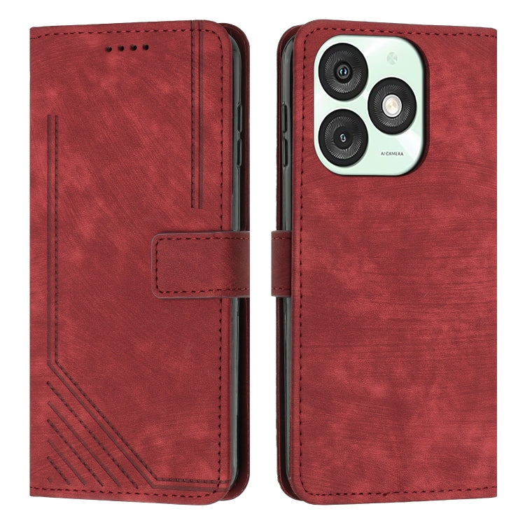 Funda de Cuero Itel A50 con Diseño de Rayas y Cordón (Rojo)