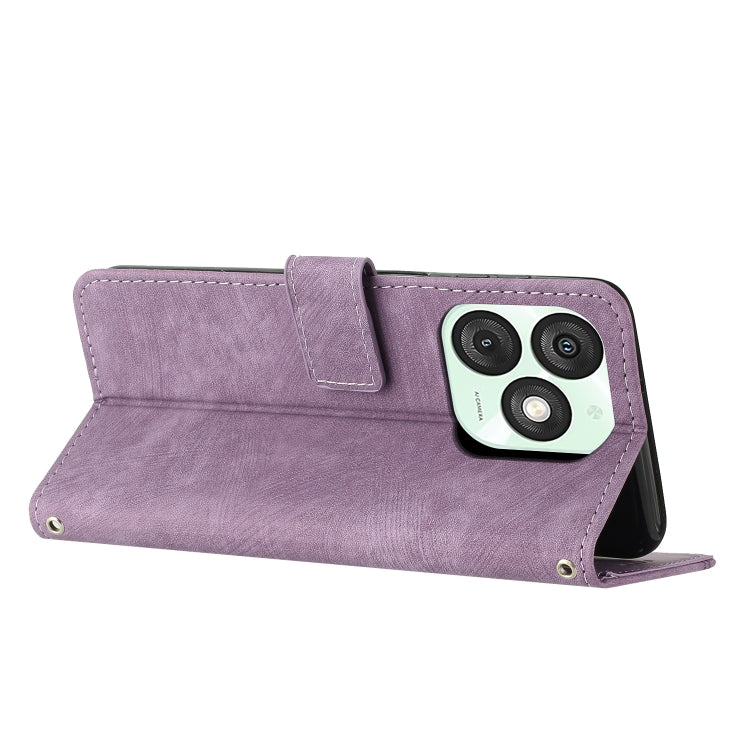 Funda de Cuero para Itel A50 con Diseño de Rayas y Cordón (Morado)
