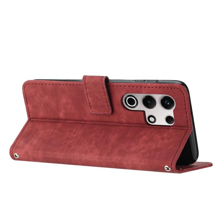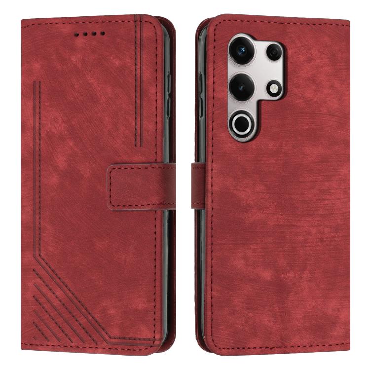 Funda de Cuero Itel S25 Ultra con Diseño de Rayas y Cordón (Rojo)