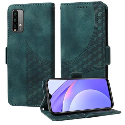 Funda de Cuero con Diseño de Rombos y Estrellas En Relieve para Xiaomi Poco M3 (Verde)