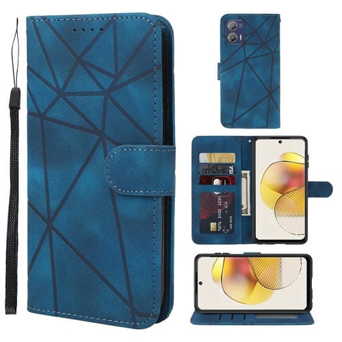 Funda de Cuero para Motorola Moto G73 con Diseño Geométrico y Líneas (Azul)
