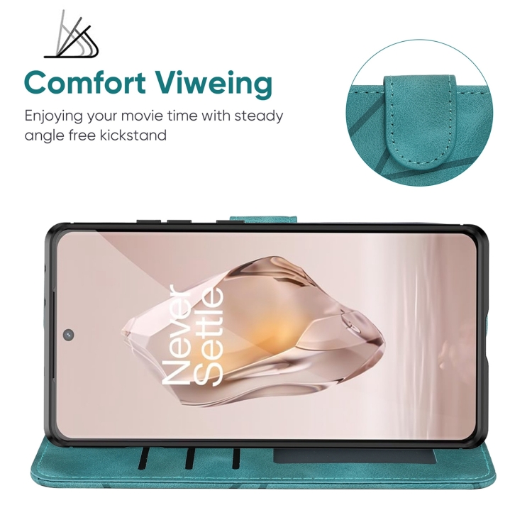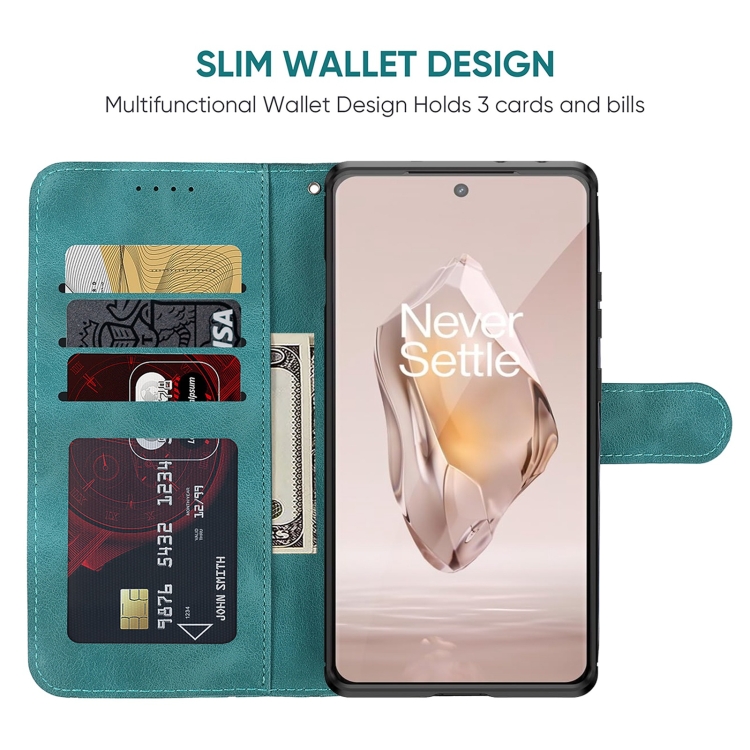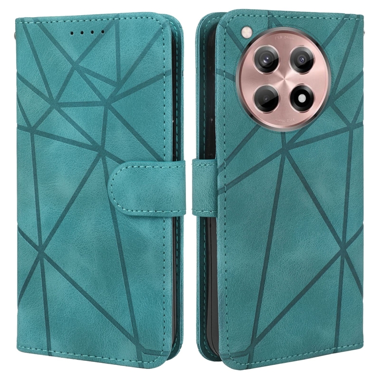 Funda de Cuero para OnePlus 12R/Ace 3 con Diseño Geométrico y Líneas (Verde)