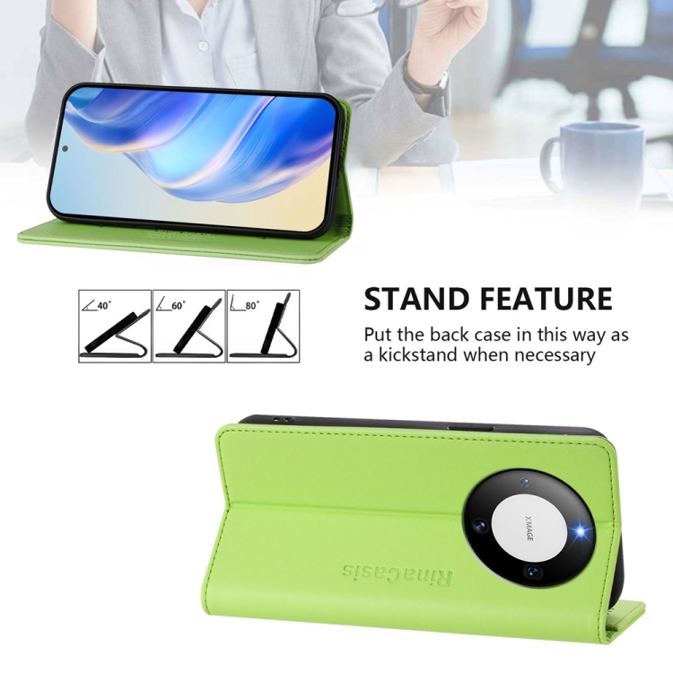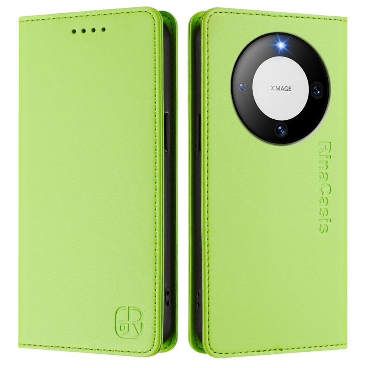 Funda de Cuero Huawei Mate 60 Pro y Mate 60 Pro+ Rc01 con Doble Pliegue y Succión Magnética (Verde Hierba)