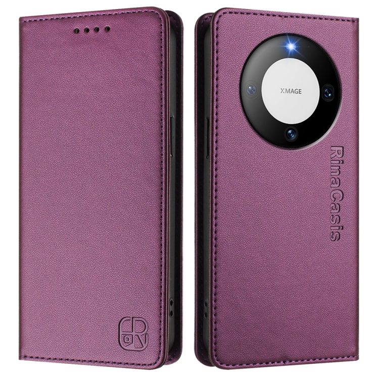 Funda de Cuero Huawei Mate 60 Pro y Mate 60 Pro+ Rc01 con Doble Pliegue y Succión Magnética (Violeta)