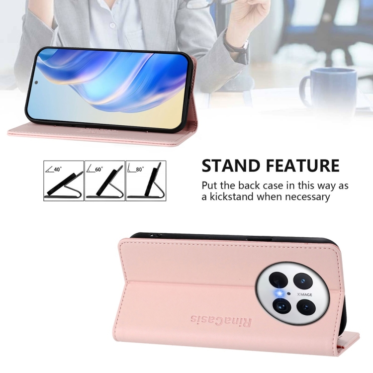 Funda de Cuero con Doble Pliegue y Succión Magnética para Huawei Mate 70 Pro Rc01 (Rosa)