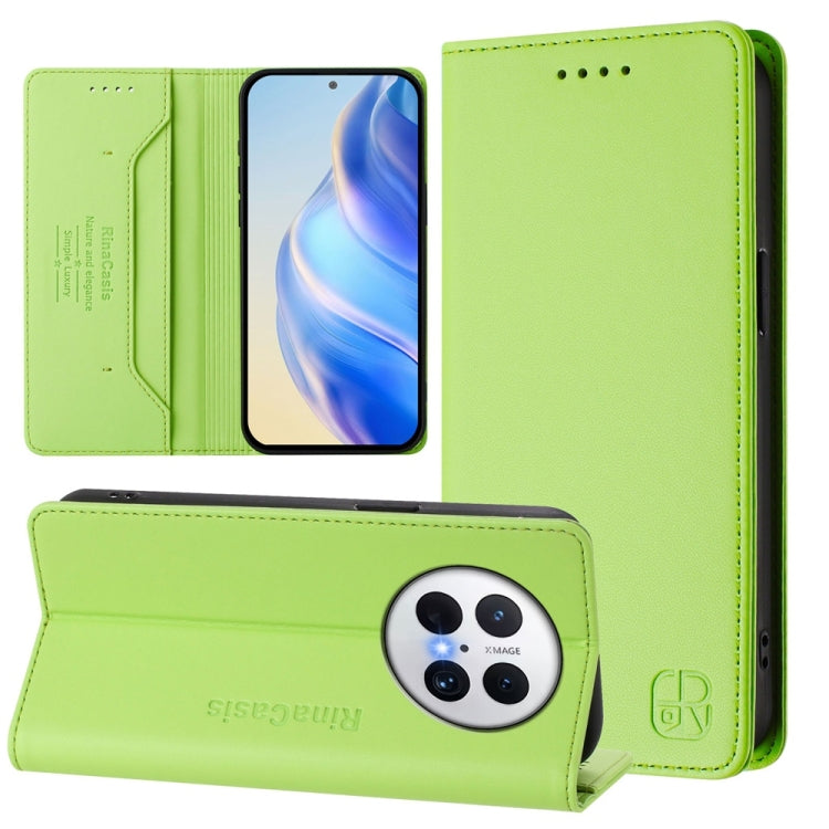 Funda de Cuero con Doble Pliegue y Succión Magnética para Huawei Mate 70 Pro Rc01 (Verde Hierba)