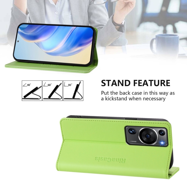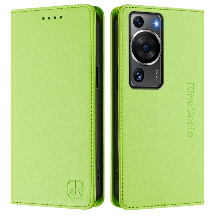 Funda de Cuero con Doble Pliegue y Succión Magnética para Huawei P60/P60 Pro Rc01 (Verde Hierba)