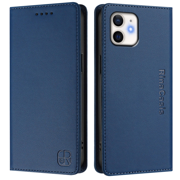 Funda de Cuero Rc01 para iPhone 12 Mini con Doble Pliegue y Succión Magnética (Azul Oscuro)