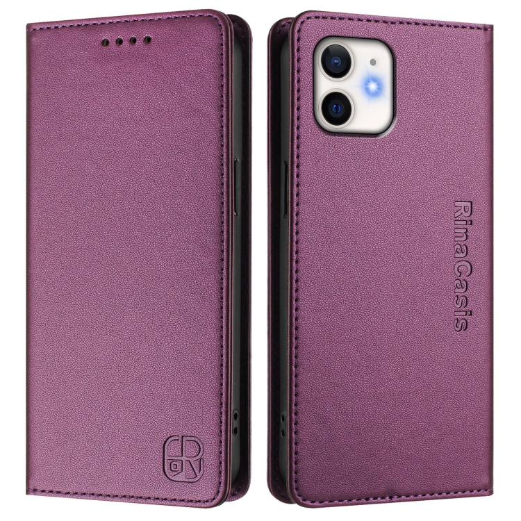 Funda de Cuero Rc01 para iPhone 12 Mini con Doble Pliegue y Succión Magnética (Violeta)