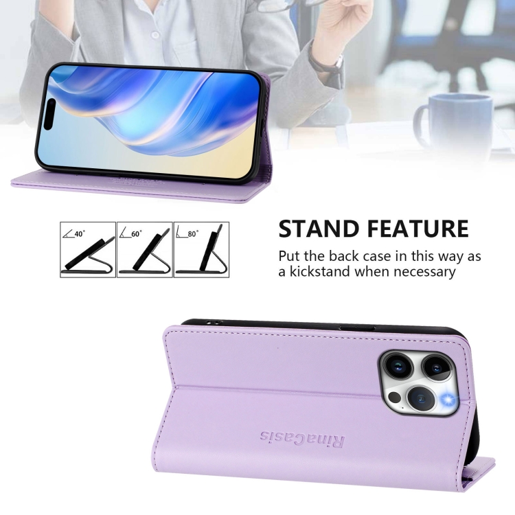 Funda de Cuero Rc01 para iPhone 15 Pro Max con Doble Pliegue y Succión Magnética (Morado Claro)