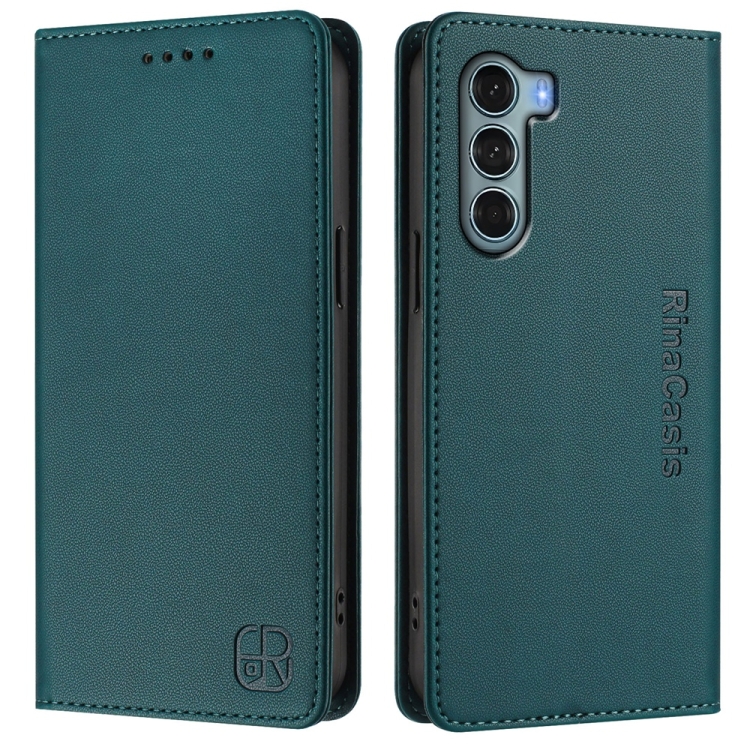 Funda de Cuero con Doble Pliegue y Succión Magnética para Motorola Edge S30 y Moto G200 5G Rc01 (Verde Oscuro)