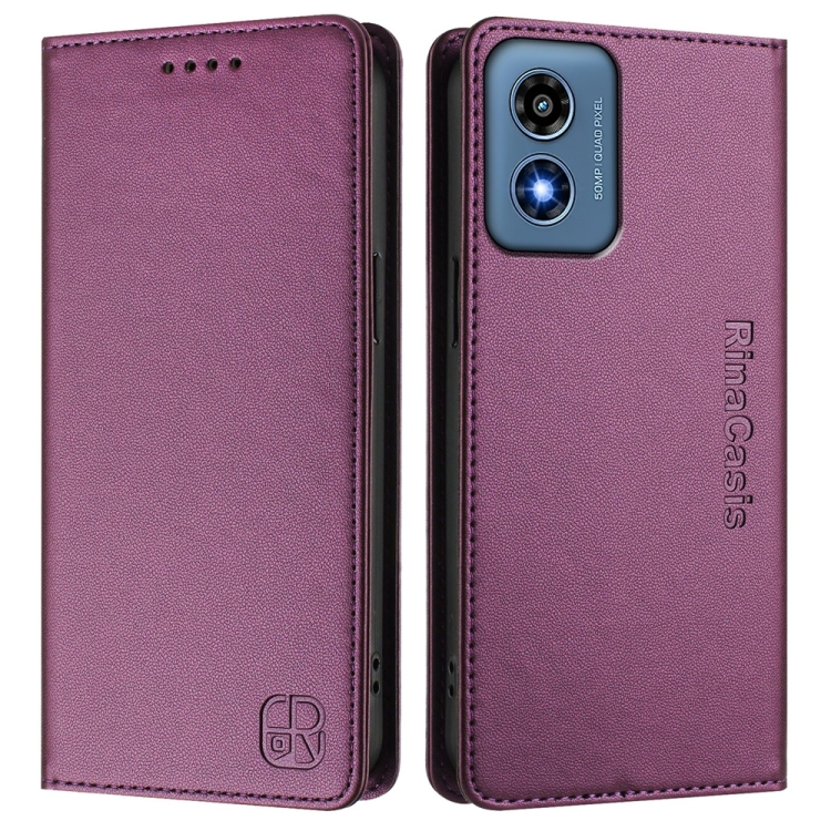 Funda de Cuero Motorola Moto G Play 2024 y Moto G 5G 2024 Rc01 con Doble Pliegue y Succión Magnética (Violeta)