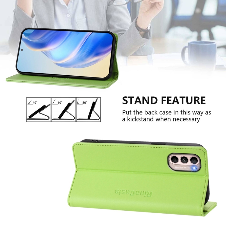 Funda de Cuero con Doble Pliegue y Succión Magnética para Motorola Moto G31/G41 Rc01 (Verde Hierba)