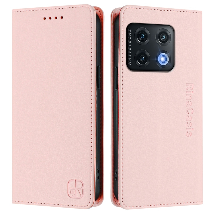 Funda de Cuero con Doble Pliegue y Succión Magnética para OnePlus 10 Pro Rc01 (Rosa)