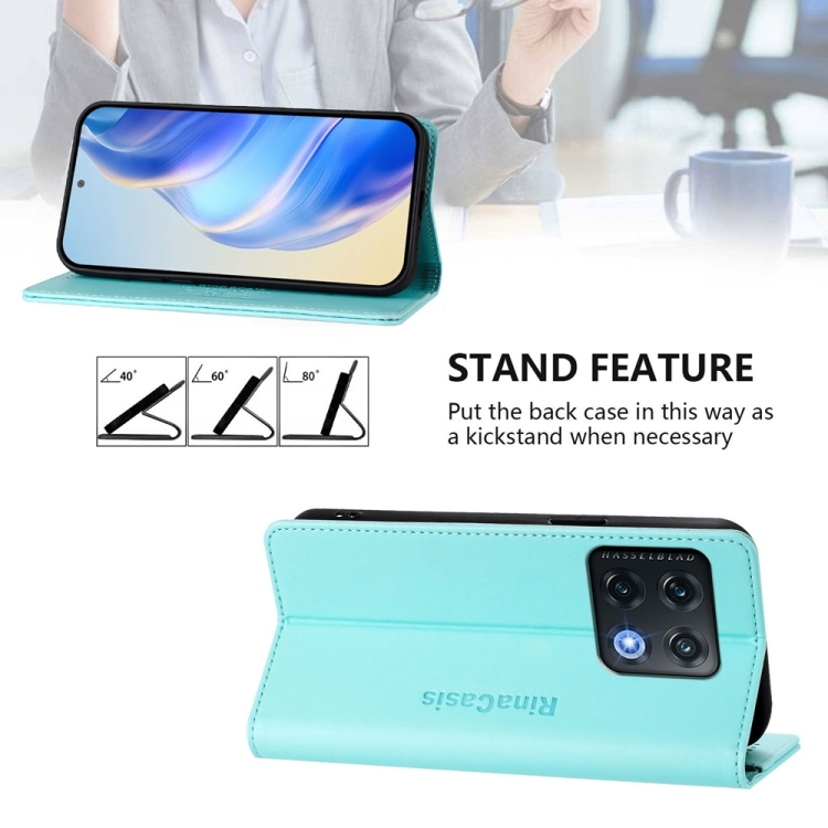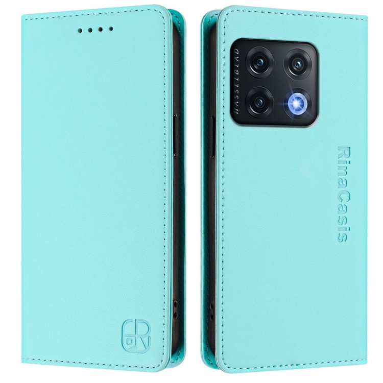 Funda de Cuero con Doble Pliegue y Succión Magnética para OnePlus 10 Pro Rc01 (Verde Menta)