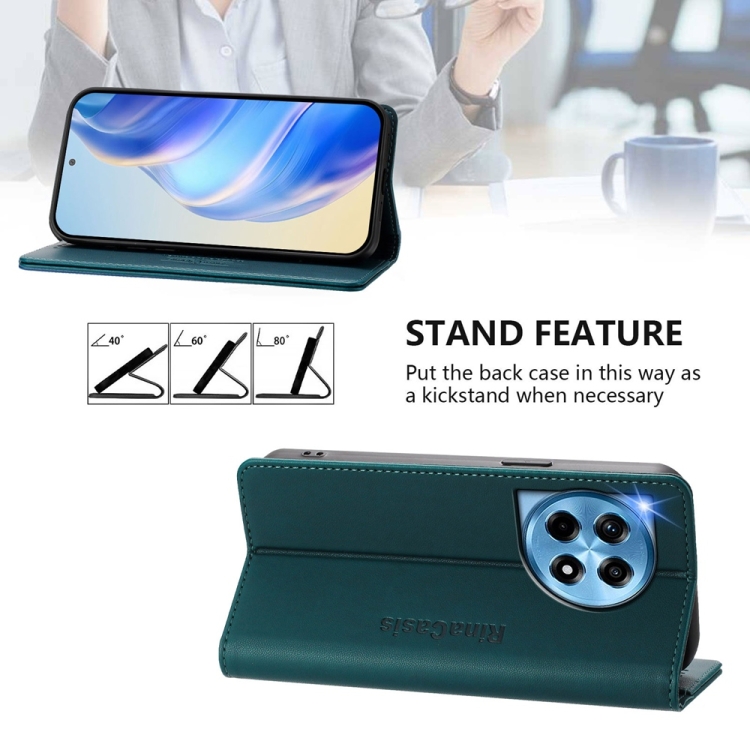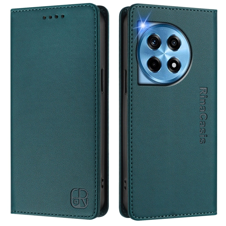 Funda de Cuero con Doble Pliegue y Succión Magnética para OnePlus 12 Global Rc01 (Verde Oscuro)