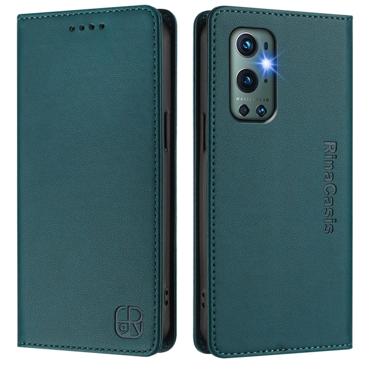 Funda de Cuero con Doble Pliegue y Succión Magnética para OnePlus 9 Pro Rc01 (Verde Oscuro)