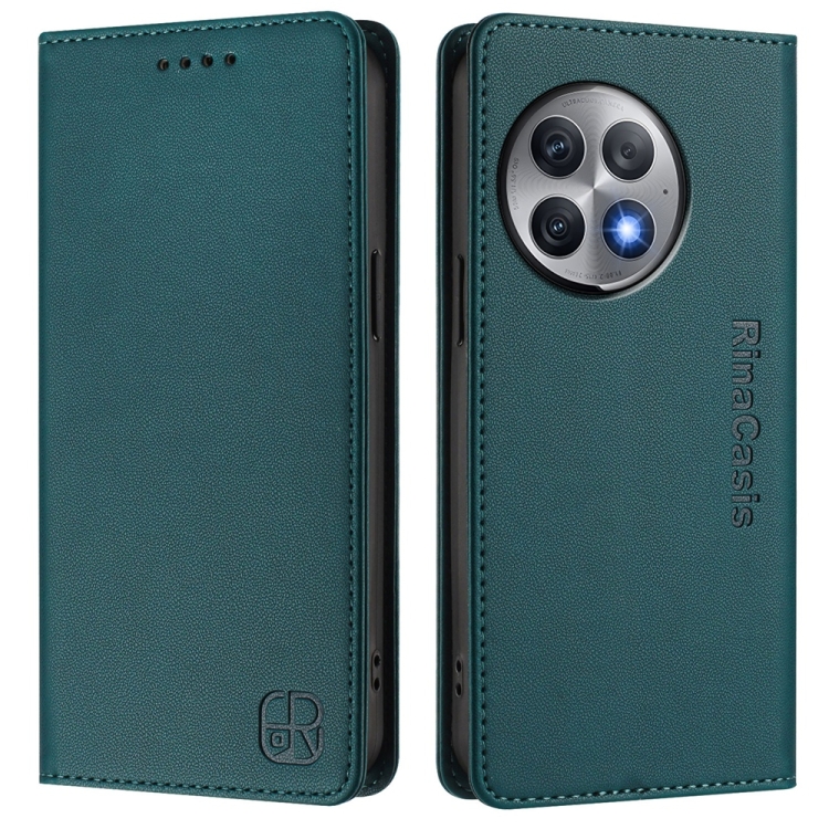 Funda de Cuero para OnePlus Ace 2 Pro Rc01 con Doble Pliegue y Succión Magnética (Verde Oscuro)