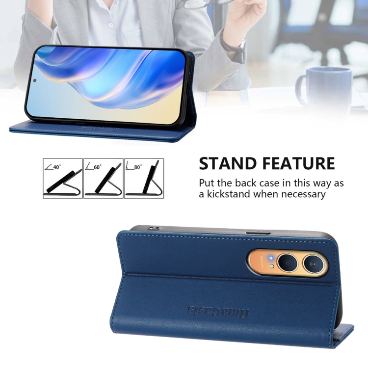 Funda de Cuero para OnePlus Nord Ce4 Lite Rc01 con Doble Pliegue y Succión Magnética (Azul Oscuro)
