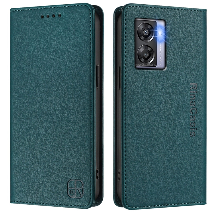 Funda de Cuero con Doble Pliegue y Succión Magnética para OnePlus Nord N300 Rc01 (Verde Oscuro)