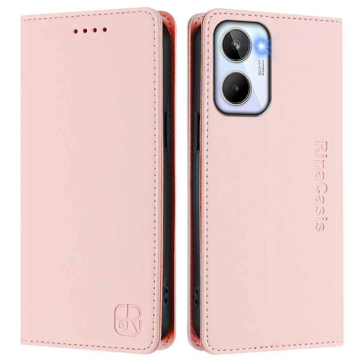 Funda de Cuero con Doble Pliegue y Succión Magnética para Realme 10 4G Global Rc01 (Rosa)