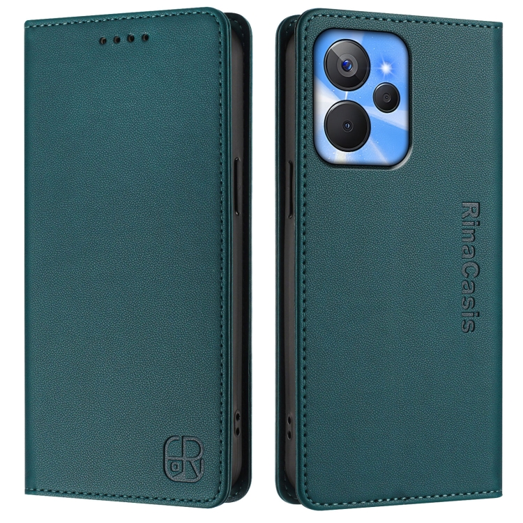 Funda de Cuero con Doble Pliegue y Succión Magnética para Realme 10T 5G/10S 5G/9I 5G Indian Rc01 (Verde Oscuro)