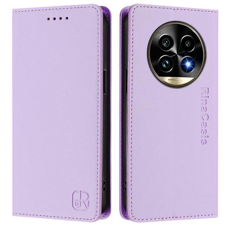 Funda de Cuero con Doble Pliegue y Succión Magnética para Realme 13 Pro/13 Pro+ 5G Rc01 (Morado Claro)
