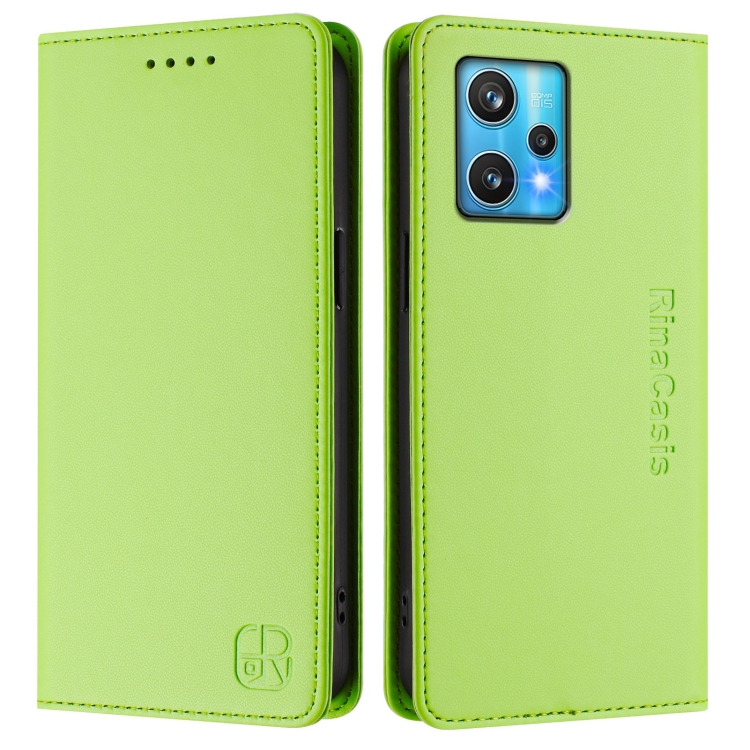 Funda de Cuero con Doble Pliegue y Succión Magnética para Realme 9 Pro+ 5G / 9 4G Global Rc01 (Verde Hierba)