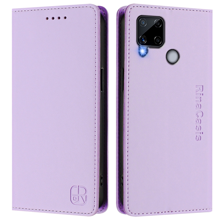 Funda de Cuero con Doble Pliegue y Succión Magnética para Realme C25/C15/C12/C25S Rc01 (Morado Claro)