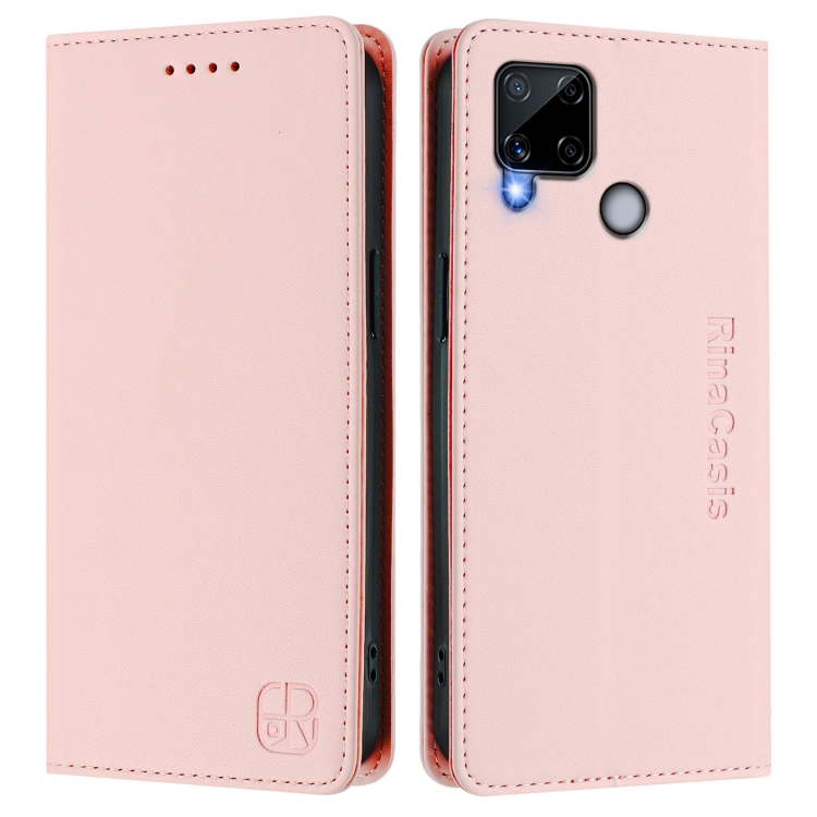 Funda de Cuero con Doble Pliegue y Succión Magnética para Realme C25/C15/C12/C25S Rc01 (Rosa)