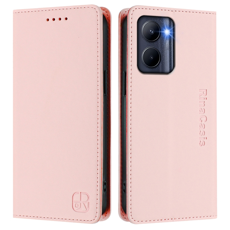 Funda de Cuero con Doble Pliegue y Succión Magnética para Realme C33 2022/2023 Global Rc01 (Rosa)