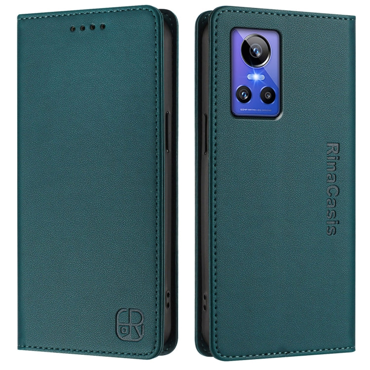 Funda de Cuero con Doble Pliegue y Succión Magnética para Realme Gt Neo 3 Rc01 (Verde Oscuro)