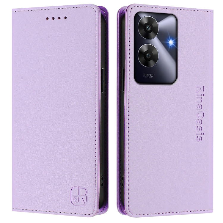 Funda de Cuero con Doble Pliegue y Succión Magnética para Realme Note 60 4G/C61 4G India Rc01 (Morado Claro)