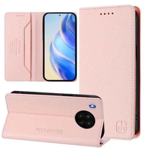 Funda de Cuero con Doble Pliegue y Succión Magnética RFID para Honor 50 Lite Rc01 (Rosa)